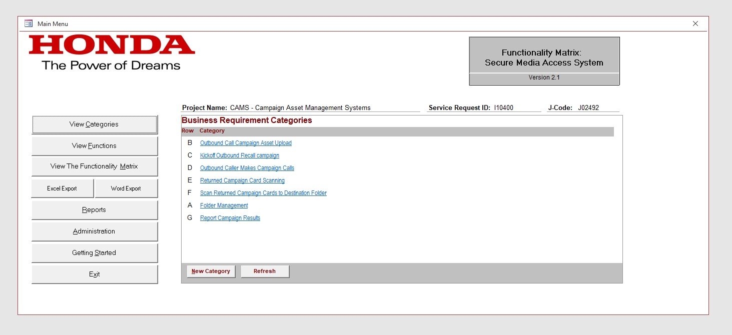 I personally developed a new enterprise-level MS Access database requirements tool for use by scope vendor, to provide formatted BRD.